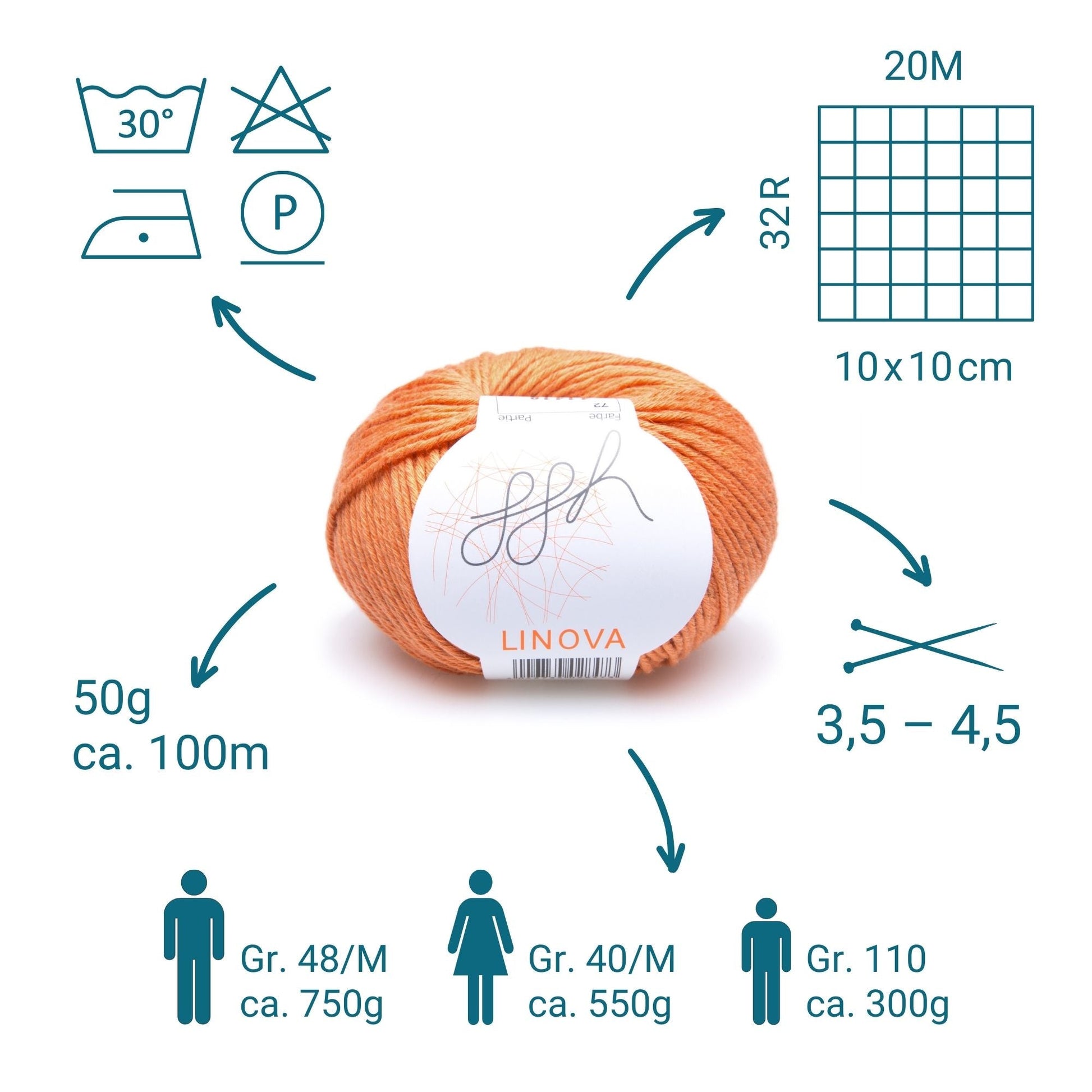 ggh Linova | 100% cotton | 100m/50g | 072 - Mandarin -